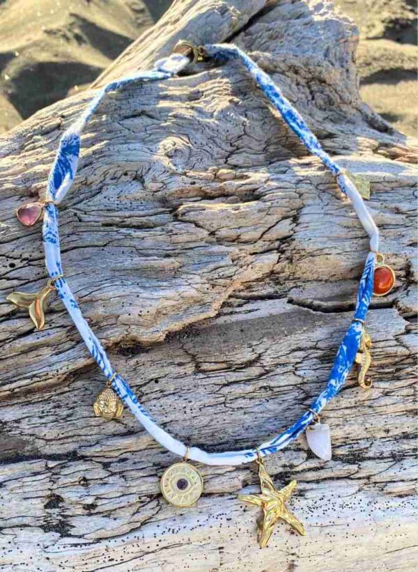 Composta da perle di sodalite blu profondo, intervallate da un singolo pendente con perla barocca, ognuna unica per forma e lucentezza. Progettata per adagiarvisi elegantemente sulla clavicola, dona un tocco scultoreo anche agli outfit quotidiani e si abbina con facilità a un tailoring pulito o a seta da sera.
