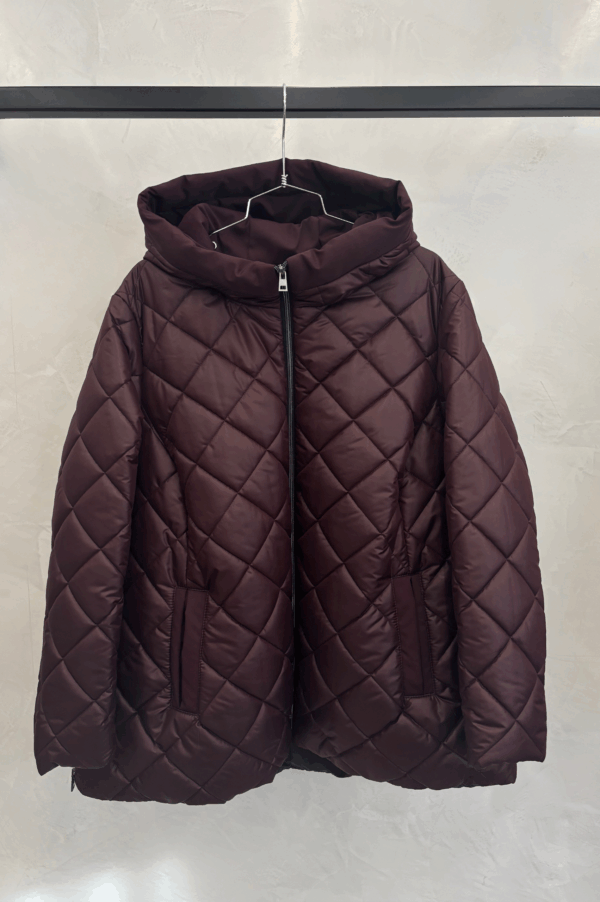 189,00 €Piumino taglie forti da donna con cappuccio firmato Meteore. Caldo, leggero ed elegante, perfetto per affrontare l’inverno con stile. -
